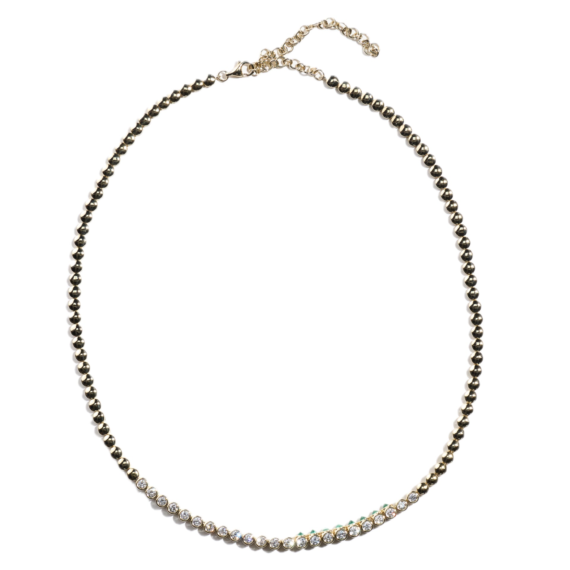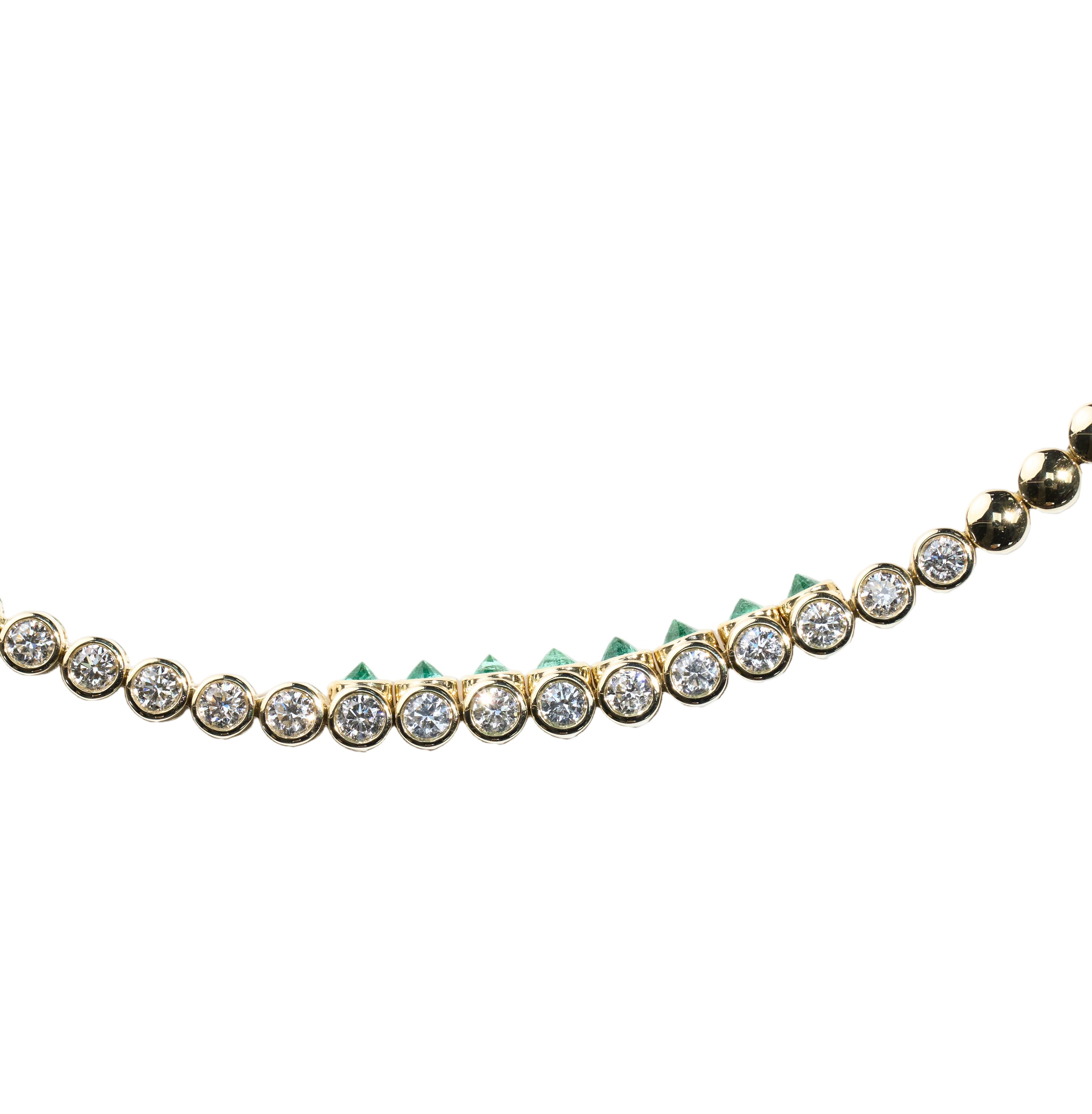 TUBBO SIDEWAY Diamond and Emerald Tennis Necklace